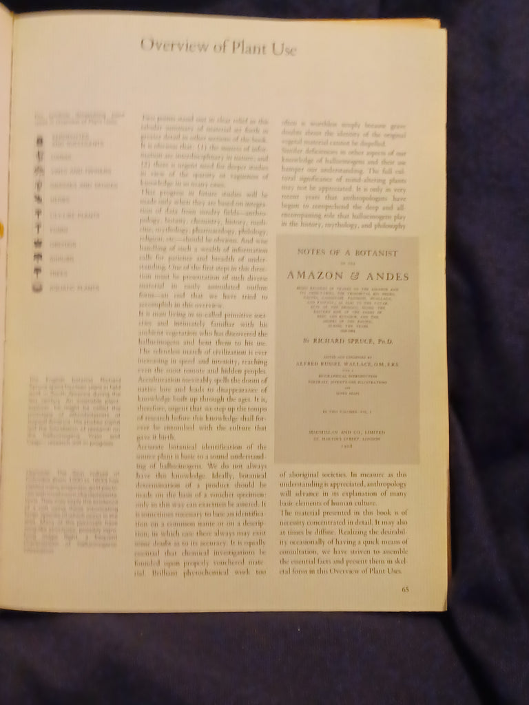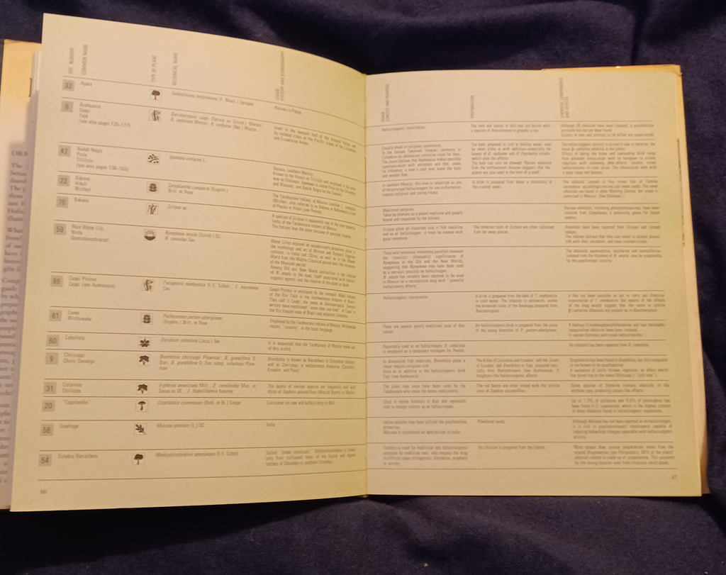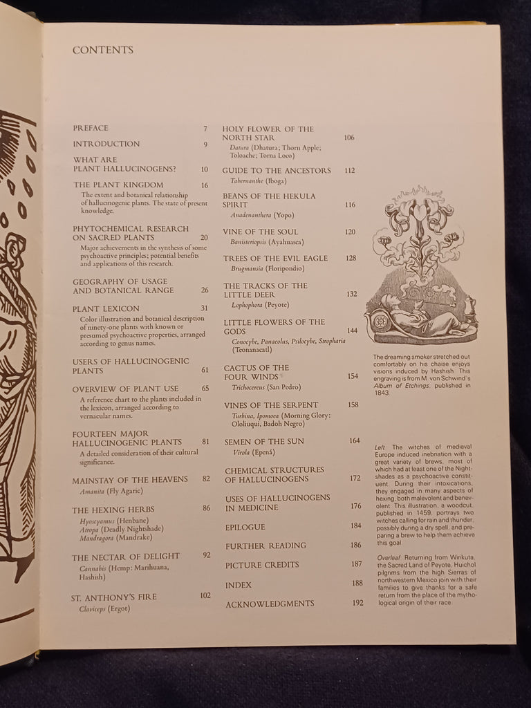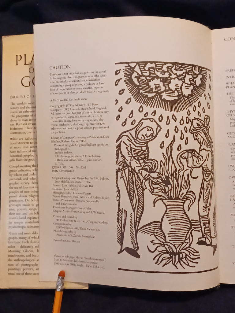 "CAUTION This book is not intended as a guide to the use of hallucinogenic plants. Its purpose is to offer scientific, historical, and cultural documentation concerning a group of plants, which are or have been of importance to many societies. Ingestion of some plants or plant products may be dangerous." - a caution on the copyright page.