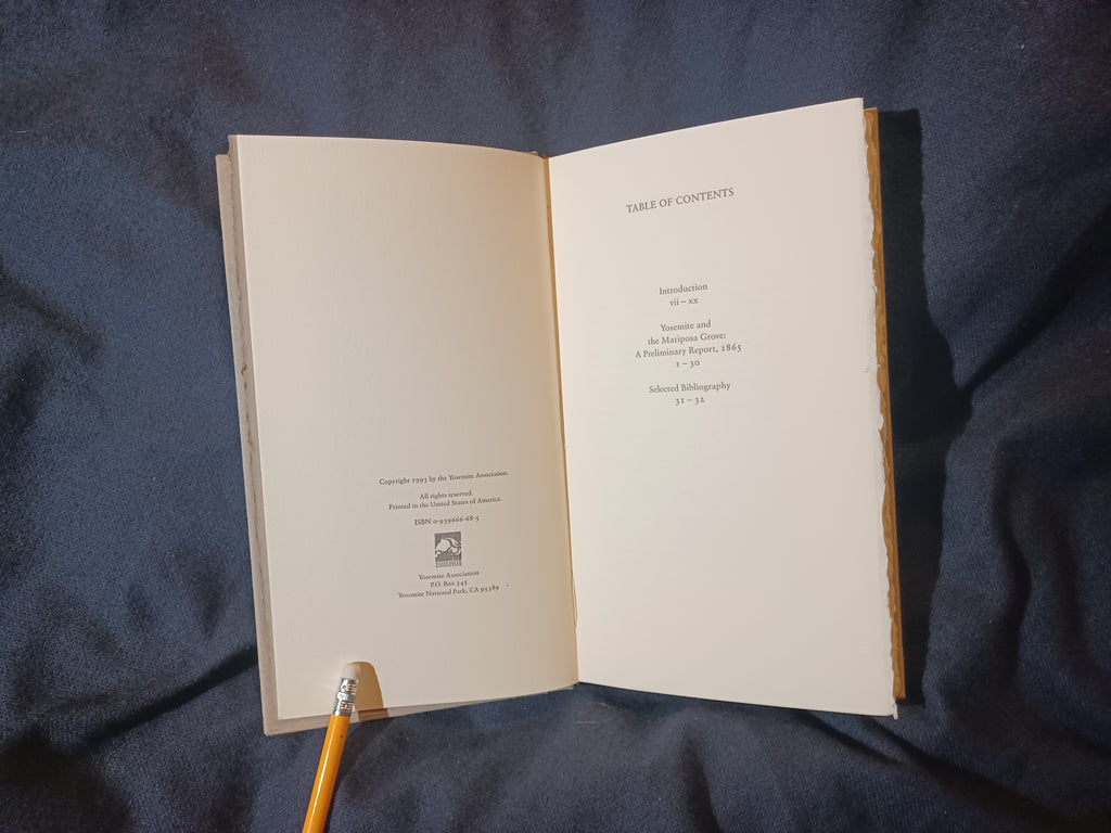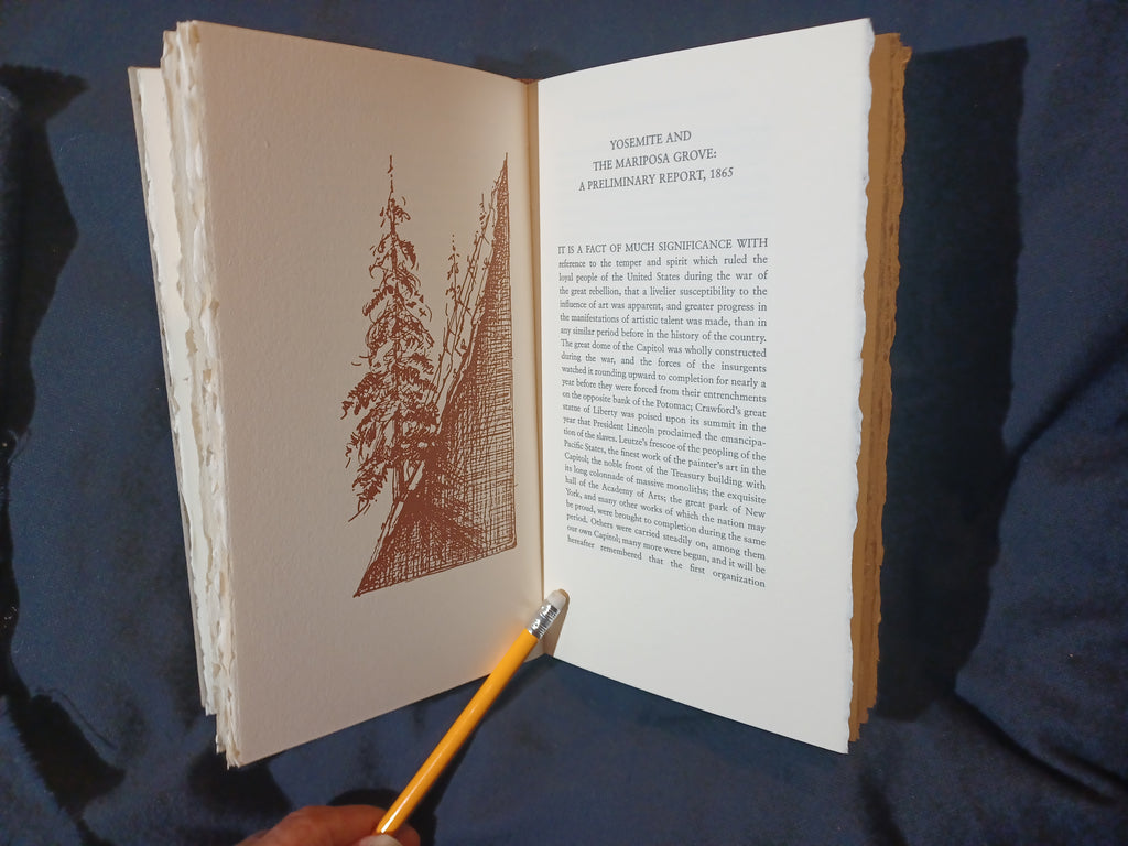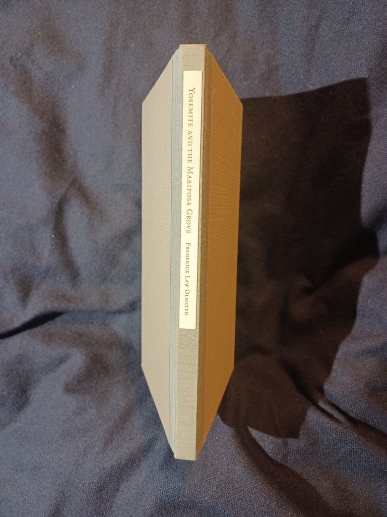 Yosemite and the Mariposa Grove: a Preliminary Report, 1865. Text by Frederick Law Olmsted. Introduction by Victoria Post Ranney. Illustrations by Wayne Thiebaud. Yosemite Association. (1993). ISBN 10: 0939666685. First Edition; First Printing. #56 from a limited edition of 100 copies signed by Victoria Post Ranney and Wayne Thiebaud on the colophon. 5 1/4" x 9 1/4" xx, 33 pages Hardcover with no dust jacket. This is the first book to be printed at One Heart Press, Berkeley, California. Designed by Michael Osborne and Norman Clayton and printed letterpress from photopolymer plates on Rives Heavyweight. The type was set in Monotype Sabon. Bound by Klaus-Ullrich S. Rotzscher, San Francisco. Included are three illustrations by Wayne Thiebaud. Maybe light cover edge wear. Otherwise, no previous owner markings. No tears, folds or creases to pages. Binding is tight with no looseness to pages. Not ex-library, not remaindered and not a facsimile reprint. For sale by Jon Wobber, bookseller since 1978. KJ04a